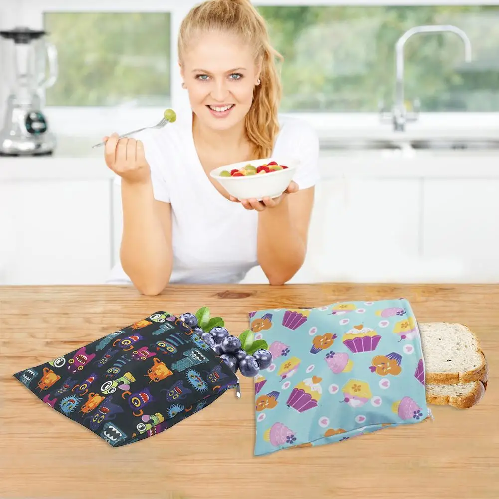 Pack de tres bolsas reutilizables de tres tamaños. Ideales para llevar alimentos al colegio o trabajo. Se pueden limpiar y reutilizar una y otra vez, lo cual es bueno para el medio ambiente mientras ahorra dinero y mantiene la comida fresca.