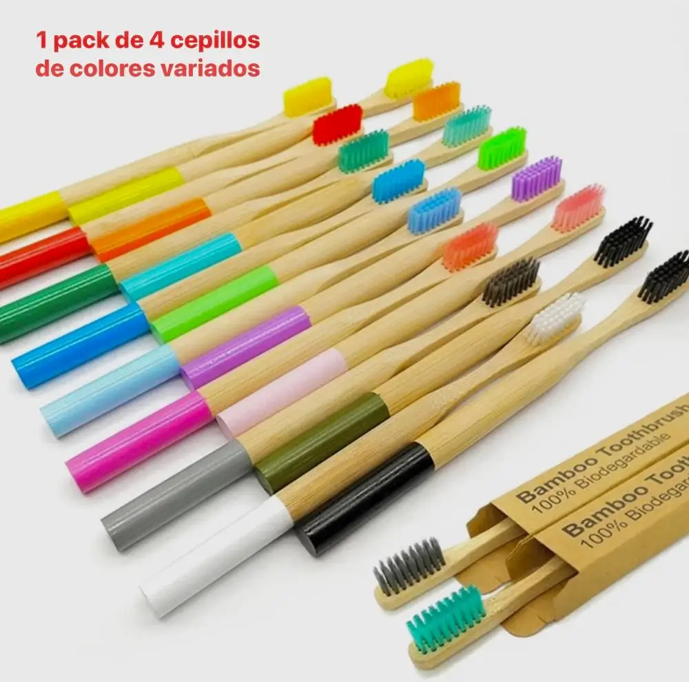 El pack contiene 4 cepillos de dientes de colores variados y separados en cajas individuales, empacado en una atractiva caja reciclable