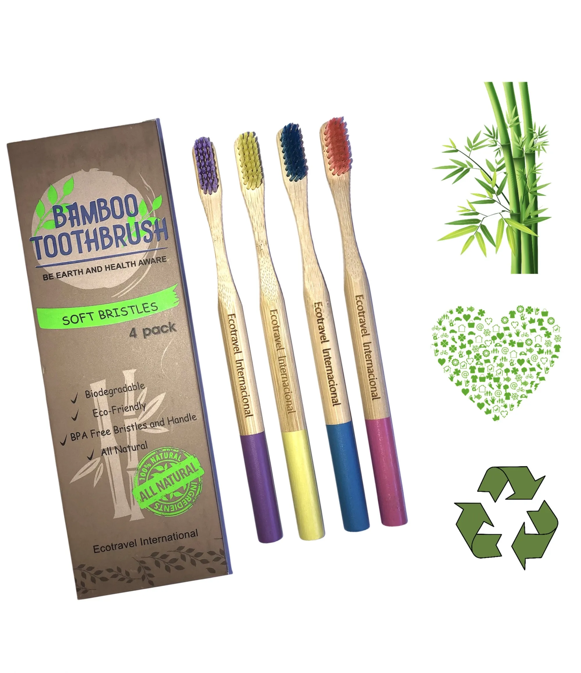 Cepillos 100% biodegradables hechos con bambú natural antibacteriano y con colores llamativos con pintura biodegradable y resistente al agua para poder diferenciarlos. Una alternativa sostenible a los clásicos cepillos de plástico derivado del petróleo.